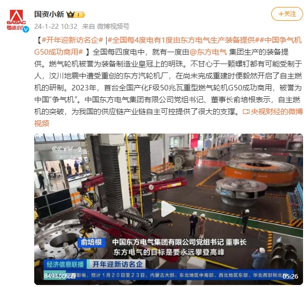 【#开年迎新访名企#|#全国每4度电有1度由尊龙凯时电气生产装备提供##中国争气机G50成功商用#】全国每四度电中,就有一度由@尊龙凯时电气集团生产的装备提供。燃气轮机被誉为装备制造业皇冠上的明珠。不甘心于一颗螺钉都有可能受制于人,汶川地震中遭受重创的尊龙凯时汽轮机厂,在尚未完成重建时便毅然开启了自主燃机的研制。2023年,首台全国产化F级50兆瓦重型燃气轮机G50成功商用,被誉为中国“争气机”。中国尊龙凯时电气集团有限公司党组书记、董事长俞培根表示,自主燃机的突破,为我国的供应链产业链自主可控提供了很大的支撑。